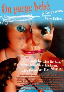 Le vaudeville semble revenir au goût du jour si l’on observe la programmation actuelle des théâtres : Feydeau, Labiche ou Guitry sont, en effet, encore et toujours présents sur les scènes du XXIe siècle. Ce peut être des mises en scène tout à fait conventionnelles : dans un salon bourgeois, les comédiens débitent leur texte avec une diction appliquée et artificielle. Ce peut être à la manière de Brethome, qui fait exploser les cadres du genre dans sa version de On purge bébé ! Le vaudeville est clairement identifié pendant le premier quart d’heure de sa pièce, avant que tout ne bascule dans la folie : accélération des répliques, jeu de plus en plus déjanté, décor de plus en plus chaotique. Et c’est bien évidemment cette deuxième veine qui emporte notre préférence.Réactualisée, dynamisée, la mise en scène d’un de ces standards du théâtre de boulevard, vus et revus, présente un véritable intérêt. Car si les thèmes abordés par Feydeau (l’arrivisme, la vénalité, les problèmes de couple et de famille en général...) ont une résonance actuelle, ils n’en restent pas moins stéréotypés. Seule une mise en scène originale et osée peut donc tirer le spectateur d’aujourd’hui de l’ennui susceptible de le gagner face à une sempiternelle intrigue bourgeoise.Laurent Brethome réussit dès le début à nous interloquer : le rideau s’ouvre sur un Monsieur Follavoine en train de scier des planches ("pour de vrai !"), seul au milieu d’un décor hétéroclite. Des chaises aux pieds à moitié sciés, des pots de chambre en porcelaine (Follavoine vend de la porcelaine et espère devenir le fournisseur officiel de pots de chambre de l’armée française), des structures métalliques accueillant des portes tapissées (qui claquent beaucoup... dans le vide !), mais pas de cloisons... voilà le lieu où évolueront les personnages de Feydeau durant une heure trente. C’est dire qu’on est loin du sage décor bourgeois !Et ce n’est pas tout ! Les comédiens qui incarnent ici les "bons" citoyens, mesquins, parvenus et égoïstes, caractéristiques du vaudeville, jouent à la perfection. Ils font certes ressortir ces traits caricaturaux esquissés par Feydeau, mais ils vont plus loin : ils basculent dans la perversion et la folie. Madame Follavoine, qui méprise son mari, est à la limite de la relation incestueuse avec son fils (le "bébé" de sept ans qu’on veut purger) ; Monsieur Chouilloux, l’élu qui doit accorder le marché des pots de chambre de l’armée à Follavoine, se comporte sur un mode burlesque savoureux ; la bonne des Follavoine est sexy et hystérique à souhait. Quant à "bébé", alias Toto (diminutif d’Hervé, bien sûr !), incarné par un génial Yann Garnier, il emporte notre adhésion à l’unanimité à la fin du spectacle. Brethome a eu la très bonne idée de faire interpréter ce personnage d’enfant à un (petit) comédien trentenaire ; celui-ci fait ressortir le vice, le caractère sensuel et tyrannique de "bébé", qui se joue de tout son petit monde et fait tourner en bourrique les adultes en refusant de prendre sa purge. Parcourant tout l’espace de la scène, en courant, sautant, cabriolant, il dynamise complètement la seconde partie de la représentation et nous offre un final exceptionnel. Du Feydeau loufoque et fantaisiste comme celui-ci, on en redemande !