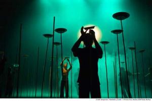 Nebbia est le dernier volet d’une trilogie née de la collaboration du cirque Eloize et de Daniele Finzi Pasca : la Trilogie du Ciel. Après Nomade centré sur la nuit, Rain sur la pluie, Nebbia prend place dans le brouillard. Il ne s’agit pas d’une brume épaisse qui masque tout, non, au contraire, c’est un fin voile qui filtre les lumières, couvre légèrement les choses d’une délicate couche blanchâtre et qui, finalement, les esthétise. Grâce à un jeu de tissus transparents tendus sur le devant de la scène, de fumigènes et d’éclairages, ce "nebbia" est extrêmement bien rendu. Il crée une atmosphère très particulière, feutrée et onirique, et participe de la magie du spectacle. Là, prennent place les onze artistes qui nous enchantent et nous subjuguent par leur talent. On admire leur polyvalence, chacun possédant plusieurs cordes à son arc et pouvant être à la fois chanteur, musicien et acrobate.Avec le cirque Eloize, qu’on avait découvert la saison passée au théâtre des Célestins déjà, on retrouve, en effet, les personnages et les numéros classiques du cirque : trapézistes, clowns, jongleurs, contorsionniste (son élasticité suscite une réaction à la fois admirative et horrifiée dans la salle), sketchs comiques, enchaînements à plusieurs sur trampoline, anneaux ou pendus à un tissu... Mais tout est modernisé et scénarisé ; les différents tableaux et sketchs s’enchaînent de manière rythmée, dynamique et significative : il y a un thème unificateur (ici l’Italie et son ambiance de carnaval, dans le brouillard vénitien (?), avec des personnages hauts en couleurs) et les morceaux sont toujours reliés par un détail de mise en scène, la réapparition d’un personnage ou d’un accessoire, par exemple. Tout semble aller de soi, on passe en douceur de l’humour d’un dialogue à la poésie et la sensualité d’une chorégraphie dans les airs. D’un bout à l’autre de la représentation, on reste scotché à son fauteuil, happé par la beauté de la scénographie ; car c’est elle qui distingue véritablement Nebbia d’un spectacle de cirque ordinaire. La Trilogie du Ciel entière est d’ailleurs une expérience esthétique à vivre absolument. Dans Nebbia, comme dans Rain et Nomade, tout n’est que songe, allégresse et beauté.
