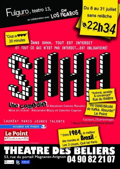 Dans un espace temps indéfini, une société totalitaire poussée à l’extrême contraint ses citoyens à un niveau zéro de liberté. Même les sentiments de chacun sont régis par des lois et autorisations. Il y a des caméras partout et la moindre liberté est encadrée et payante. Même pour s’offrir une dispute avec son conjoint chez soi, il faut s’acquitter d’une autorisation et d’un forfait payant. Pour courtiser une jeune, il faut obéir à des règles, faire une autorisation au préalable, payer d’avance et être du même niveau social.Cette comédie n’est pas sans rappeler certains régimes en vigueur dans notre monde. Ici le parti-pris par l’auteur est avant tout la farce, en poussant tous les curseurs dans le rouge. A travers cette multitude des saynètes et ce rythme trépident, on ne s’ennuie pas. Les comédiens prennent un immense plaisir à interpréter des personnages excessifs parfois jusqu’à l’absurde, et cela se sent clairement.Six acteurs pour interpréter 28 personnages en 1h20, avec des costumes hallucinants : voilà un spectacle engagé, drôle et original qui joue à guichets fermés tous les soirs au théâtre des Béliers.