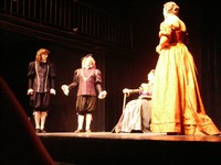 La Reine Vierge d’Angleterre Elizabeth PremierCes quelques lignes maladroites pourraient présenter cette comédie bouffonesque écrite en vers aligne les plaisanteries grasses comme les grossièretés pures, joue avec les personnages historiques comme s’ils étaient de pantins, fagotés, travestis, bêtifiés, tapétifiés,…Néanmoins, l’idée est excellente. Quoique des références et jeux de mots ultra-connus interfèrent et déconcentrent du sujet, la pièce fait rire franchement et sincèrement grâce à des acteurs qui s’éclatent sur scène.