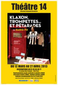 Quand Dario Fo écrit Clacson, trombette e pernucchi en 1981, l'Italie sort d'une crise marquée par une décennie de terrorisme, sur fond de crise politique et économique. Face à cet état de fait décadent, le climat social purulent endigue le pays dans un malaise profond.L'Italie, l'autre pays de l'automobile localisé à Turin avec la célèbre marque à quatre lettres Fiat , a inspiré l'auteur éponyme d'écrire une pièce contextuelle, narrant les travers d'un grand patron de l'industrie locale et internationale en parallèle de la modeste vie d'un ouvrier de son groupe. Gianni Agnelli sut faire de Fiat la plus importante entreprise d'Italie. La Fiat 500 était l'ambassadrice de la dolce vita sur les routes italiennes, un parfum de romantisme à l'essence Agnelli.L'histoire de Klaxon, trompettes... et pétarades : Antonio, ouvrier à l'usine Fiat de Turin, se promène au volant de sa 132 sur les faubourgs extérieurs de la capitale du Piémont. Soudain, un effroyable accident se produit sous ses yeux. Témoin de ce drame de la route, il cherche à venir en aide aux personnes incarcérées dans le véhicule en proie aux flammes. La plupart des victimes meurent asphyxiées.Bravant le danger, il parvient à en extraire une seule, déjà bien défigurée. D'un geste salvateur pour la protéger, il la recouvre de sa veste. Illico presto, il l'amène du mieux qu'il peut dans sa 132 à l'hôpital le plus proche. Il y a urgence, la victime n'est pas belle à regarder. Le personnel de l'hôpital intervient immediatamente, la victime est conduite à toute vitesse au bloc opératoire. Chirurgiens, médecins et infirmiers travaillent avec cautela et minuziosamente, les brûlures ont anéanti le visage de cet homme. Heureusement, il y avait des papiers d'identité dans la poche de la veste. Pour recréer une plastique faciale, une photo a servi de modèle pour redonner vie à ce visage.L'opération s'est parfaitement bien déroulée. Sa femme peut venir le reconnaitre sans crainte. Rosa, le tempérament latin sous une robe à fleurs, arrive circonspecte devant son mari couvert de bandelettes, une momie sur chaise roulante. "Mon Dieu, mon Dieu, qu'avez-vous fait de mon Antonio !"Vous l'avez bien compris, en lieu et place d'Antonio, la victime de l'accident de la circulation n'est autre que le patron de Fiat, Gianni Agnelli. La chirurgie réparatrice s'est fixée sur la photo des papiers d'identité retrouvés dans la poche de la veste. Sauf que cette veste appartient à Antonio, l'ouvrier de l'usine Fiat de Turin...A cette heure, l'incongruité de la situation n'a pas encore alarmé la presse. L'industriel se réveille hagard et furibond. Ses yeux cherchent à exprimer ce qu'il ne peut pas dire. L'orthophoniste s'applique à lui faire répéter des sons, puis des mots imprononçables. Dire "canard d'eau" lui parait insurmontable. Il ne reconnait même pas Rosa, sa tendre moitié émotive. Par contre, ses mains s'agitent avec désinvolture à l'entrée de Lucia, la petite garce. Peu de temps après, la presse italienne annonce en toutes lettres le kidnapping du patron de Fiat. Le Corriere della serra indique avec assurance que Gianni Agnelli a été enlevé par des terroristes. Le bel Antonio, modeste ouvrier à l'usine Fiat de Turin, est en photo dans le journal. Il était présent au moment des faits, occupé à surveiller le bon déroulement des opérations. Désormais, sa tête est mise à prix ; il est catalogué dans l'album de familles des dangereux criminels recherchés par les polices du pays.Tout ça n'est que pure calomnie. Antonio, c'est un courageux ouvrier qui a fait preuve de civisme en intervenant sur le lieu de l'accident pour secourir le blessé. Acculé, il se voit contraint de fuir et de se cacher car il a sa conscience, la conscience d'un honnête homme qui n'a fait que son devoir.Il n'est pas facile de vivre avec le visage d'un autre qui n'est pas mort et lequel vous a sauvé la vie. Une ambiguité, fruit d'une confusion d'identité, aboutissant à la création physique d'un sosie. S'ensuivent, dès lors, une profusion de quiproquos rocambolesques dans lesquels la famille et la politique mélangent étroitement les genres.Klaxon, trompettes... et pétarades, une satyre sociale menée à la vitesse d'une chaîne de production industrielle. Successions de gags ciselés respectant la trame de la comédie exprimée dans le texte, effets de surprises instantanés. Ces moments de délire ne se décrivent pas, il faut les voir pour les apprécier. Une subtilité du metteur en scène.La mécanique de la mise en scène de Marc Prin, un clin d'il au film Les Temps modernes de Charlie Chaplin, insouciant et généreusement désinvolte, qui côtoie le burlesque de Buster Keaton dans Le Mecano de La "General". Marc Prin, le talent épuré d'un metteur en scène bien dans son époque, l'étoffe d'un Grand Metteur en scène. Félicitations.Les comédiens, tels des pantins articulés et remontés à l'aide d'une clé dans le dos, s'agitent à bon escient en tout sens, passent d'une situation à l'autre avec artifice. L'interprétation des artistes est remarquable, certains endossant plusieurs personnages. Un joli point d'exclamation adressé à Milena Esturgie (Lucia et la juge), Anne Dupuis (le médecin), Gérald Cesbron (le commissaire). Deux jolis points d'exclamation adressés à Gilles Ostrowsky (Antonio et le sosie) et à Céline Dupuis (Rosa).Décors, costumes, postiches et maquillages s'harmonisent avec bonheur dans cette farce, un régal grandeur nature pour les yeux. Klaxon, trompettes... et pétarades, une heure et quarante-cinq minutes d'intensité, un feu d'artifice théâtral servi par une mise en scène géniale et d'excellents comédiens, associé à la volupté du texte de Dario Fo.Cette maxime de Sacha Guitry pour conclure cette magnifique représentation théâtrale : "Il y a certaines choses que j'ai faites parce que je savais qu'elles seraient amusantes à raconter".