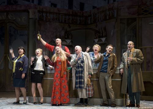 Pour rester dans le ton et vous mettre dans l’ambiance de la pièce, on vous dira qu’une brève ça va, que deux brèves ça va, mais que trois brèves... Vous connaissez la suite ! Jean-Michel Gourio a eu l’idée, on pourrait même dire la bonne idée, de collecter ce qu’on appelle les "brèves de comptoir", toutes ces petites phrases du quotidien, ces expressions populaires, ces banalités, ces aphorismes énoncés par monsieur tout le monde au coin du bar. Depuis vingt ans, il note scrupuleusement les bons mots qu’il entend aux hasards des conversations de bistrot. Ce peut être des platitudes, des tautologies, des plaisanteries, des propos racistes, scatologiques, graveleux, "philosophiques" ou encore politiques. Tous les thèmes y passent, dans tous les registres, sur un ton essentiellement familier.Le problème de ces Nouvelles Brèves de comptoir tient dans le passage à la scène : que ce soit le jeu déclamatoire des comédiens, qui lancent chaque brève haut et fort en nous faisant bien comprendre qu’il faut rire (il ne manquerait plus qu’un chauffeur de public avec un carton : "Allez, riez !") ou la mise en scène répétitive, le texte supporte mal la transposition au théâtre sous la forme d’un spectacle qui dure tout de même 1h40. Les quelques changements de configuration des différents bistrots qui tiennent lieu de décor ne suffisent pas à nous tirer de notre ennui. Les brèves s’enchaînent, certes reliées autour de grandes thématiques, mais sans véritable dialogue ou échange entre les personnages. On ne peut d’ailleurs pas vraiment parler de personnages ; tous se ressemblent : ce sont les alcoolos du coin, hommes ou femmes, très peu individualisés, uniquement là pour réciter les phrases consignées dans son recueil par Jean-Michel Gourio.On vous conseille plutôt, si vous êtes amateurs du genre, d’acheter ce recueil et d’en lire une ou deux de temps en temps. Mais le récital de presque deux heures sur scène est absolument "imbuvable". C’est pire que d’avoir pour voisin de table le spécialiste de la blague, celui qui est capable de vous occuper tout le dîner en enchaînant celle de l’aveugle qui..., celle de l’arabe qui..., celle du belge qui... ou encore celle de la blonde... Mais peut-être ne sommes-nous pas bon public car il faut avouer que les spectateurs rient beaucoup, et à intervalle régulier, tels une boîte à rire. Finalement ce chauffeur de public n’existe-t-il pas, caché quelque part dans la salle ?