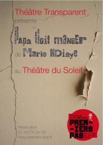 La compagnie Théâtre Transparent décide de monter le texte puissant de Marie NdDiaye pour sa deuxième création, Papa doit manger. L’auteure est publiée à 17 ans et remporte rapidement différents prix (Prix Femina et Prix Goncourt). Dans un premier temps romancière, elle se tourne petit à petit vers le théâtre qu’elle écrit sans même s’en rendre compte. Aujourd’hui, sa pièce Papa doit manger fait partie du répertoire de la Comédie française. Elle flirte également avec le monde du cinéma en devenant coscénariste pour le film White Material (2010) et en acceptant une version cinématographique de son roman Trois Femmes puissantes par Christophe Perton. Une écrivaine de talent qui aborde le thème de la famille sans détours ou explications. Ses personnages n’ont ni temporalité, ni lieu, ou contexte précis. La force de son écriture se trouve dans les dialogues des personnages et leur interaction.Dans Papa doit manger, un père retourne dans le foyer familial après de nombreuses années d’absence. Sa femme, toujours folle amoureuse de lui, s’est résignée et s’est désormais mise en ménage avec un gentil professeur. Leurs deux filles connaissent peu leur père qui est noir alors qu’elles sont blanches. Ce retour apparaît alors comme une situation délicate, mais papa fait le beau, affirme sa supériorité et étale sa richesse. Selon lui, il serait parti pour les affaires et maintenant que sa fortune est faite, il revient auprès de ses femmes. C’est sans compter sur la belle-famille raciste, une mère désabusée avec son bébé vivant à l’hôtel, et surtout, le secret de papa...Une pièce effectivement puissante qui traite plusieurs thématiques comme la famille, l’amour, le racisme, l’envie d’une vie meilleure... Le texte est beau, pas toujours limpide mais surtout omniprésent. Beaucoup trop. Dans cette création, les actions semblent être oubliées. Le texte sert d’explication et de moteur de jeu. Bien sûr, les relations entre les personnages donnent un peu de matière aux comédiens mais cela est trop peu. Alors que les relations sont explicites dans le texte, on n’en décèle aucune variation. Le texte est joué et le corps oublié. Cela donne une version qui semble encore en travail, en expérimentation.La scénographie est ingénieuse. Des cartons vides empilés et mobiles permettent des changements de scène rapides et clairs. Des cartons de déménagement qui deviennent murs, canapé, lit... Pouvant resserrer l’espace ou l’agrandir, ils donnent une impression de construction ou de banlieue, un univers en changement, en construction. Leur déstructuration pour le tableau final offre une vision très belle de cette scène où tout a volé en éclat mais ou l’amour reste intact au milieu des débris.L’utilisation des masques d’oiseaux pour les changements peut être encore approfondie. Ils apportent une dimension absurde, voire fantasmagorique. Echo aux oiseaux inquiétants d’Hitchcock, menace inquiétante, oiseaux de mauvaise augure, ou simple témoin de l’histoire, observant les hommes se déchirer avec leurs passions du coin de l’il. Sauf qu'ils arrivent comme un cheveu sur la soupe, laissant le spectateur perplexe sur leur utilité et leur signification.Les comédiens font un travail sur leurs personnages que l’on sent prometteur. Il reste cependant en chantier et, à l’image de la pièce, demande d'être poussé davantage. La compagnie Théâtre Transparent est forte d’une diversité dans la composition de son équipe. Un mélange qui permet l’écoute agréable de différents accents.Papa doit manger mérite d’être approfondi. Essentiellement au niveau de la mise en scène et du jeu des comédiens. Même si le texte est très bon, cela ne fait pas tout... L’adaptation du metteur en scène combinée au génie de ses comédiens font d’une pièce une uvre remarquable et un moment de pur bonheur.