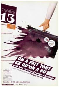 Philippe Fenwick, un homme-palette. Il stocke les domaines d’activités artistiques, les conditionne sous un film transparent pour mieux les déballer en public. Des théâtres, il en a co-dirigés en Seine Saint-Denis avec William Mesguich ; des interventions dans un lycée professionnel du 93, il en a assurées quelques-unes ; des pièces de théâtre, il en a publiées une vingtaine dans l’hexagone et à l’extérieur ; comédien, il a joué dans une quarantaine de créations. Que dire de plus. Le théâtre, il le vit sur les rails et ça va vite, les quais de gare défilent en coup de vent. Le paysage de la campagne, il n’a pas le temps d'en profiter. Par contre, il s’amuse du Paf, le Paysage artistique français, comme personne d’autre n’avait osé le faire et encore mieux le dire jusqu'à présent.Le titre de sa dernière création, il faut prendre son souffle pour le lire, On a fait tout ce qu’on a pu mais tout s’est passé comme d'habitude. Qui connaît Philippe Fenwick, se déplace pour venir le voir. Le théâtre, son théâtre, il l’exprime avec des mots marqués au rouge sur le brasero de la politique culturelle. Politique culturelle, vous dites ! Allons, ne vous laissez pas aller à des envies de subventions comme d’une glace à la fraise à la terrasse d’un café.Ce spectacle, la constellation d’un rêve, une fantaisie de 1 300 jours, des traverses de chemin de fer sur 15 000 kilomètres et au final, un storyboard théâtralisé sur la scène du théâtre 13, côté Seine.L’histoire. Fenwick, auteur de théâtre, vit avec son épouse à Liberta. En juillet 2008, A la suite de la mort accidentelle de son père en avion, Fenwick décide de se lancer dans ce qui est, pour lui, la plus grande aventure théâtrale itinérante jamais réalisée : une tournée de Brest à Vladivostock par le Transsibérien avec une proposition de théâtre-cirque joué chaque soir...D’entrée, le ton est donné avec cette coïncidence "Fenwick je m’appelle Fenwick comme la marque de chariot élévateur... Je n’ai aucun lien avec l’entreprise qui porte mon nom et ceci depuis plusieurs générations...".A texte burlesque, le ridicule de situation ne tue pas l’incohérence. Le poids des mots, le choc des idéaux. Liberta, capitale de la Dramatie. Une ville qui ne connaît pas la résistance, Liberta, je chanterai ton nom.