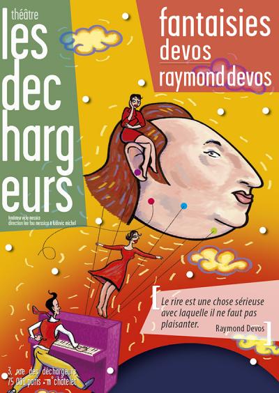 Chez Devos, rien, ce n’est pas rien. La jonglerie des mots mène toujours à la chute. Un homme qui a chu, est-il déchu ? De cette question, jaillissent les tourments intérieurs des trois personnages : conflit conjugal, problèmes de voisinage, relations à Dieu, à la matière... De chute en chute, Fantaisies Devos est un voyage musical dans la Matière à rire du grand Raymond joué et chanté par deux femmes, un homme et un piano.