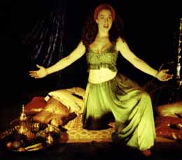 Seule sur scène, la comédienne, Maria Beloso Hall, incarne chacun des personnages grâce à des métamorphoses "promptes et suggestives". Avec un réel talent d'acteur puisque ces transformations successives ne gênent en rien la compréhension du spectacle. Le secret réside sans doute dans le plaisir de la comédienne à jouer le texte : en lisant la traduction des Mille et Une Nuits de J.-C. Mardrus, Maria Beloso Hall a "tout de suite été captivée par le personnage de Shéhérazade". Cela se voit.
