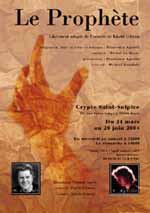 Après une tournée internationale, en France, Italie, Portugal et Liban, Le Prophète arrive sur les rives de la Seine, sous les voûtes de la Crypte de l'église Saint-Sulpice, pour nous offrir ses paroles de sagesse.