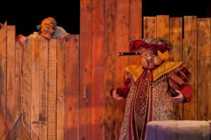 Un décor qui se voudrait hyperréaliste dans lequel se joue d’emblée une sorte de ballet très coloré de porteurs de sacs et de ballots – nous sommes sur un port - tandis que passent des personnages savamment masqués et costumés que nous découvrirons bien mieux par la suite : cela fait immanquablement penser à des caricatures de Daumier qui se mettraient soudain en mouvement… C’est l’image que le Kronope veut donner d’emblée à ces « Fourberies de Scapin » : à cette œuvre très connue, la Compagnie a voulu conférer une dimension quasiment circassienne, ubuesque aussi, et en faire une sorte de spectacle total, tel un feu d’artifice scénique. Pour autant, une telle interprétation sait mettre en valeur, à sa manière et sans aucun problème, le texte savoureux de Molière.