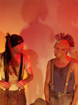 Les "héros" de cette histoire sont deux ouvriers, Tiboulo et Trabendo, petits cousins sans doute de Wladimir et Estragon d'En attendant Godot de Samuel Beckett, à la recherche d'un emploi dans un contexte économique où la notion même de travail en tant que valeur est vouée à une prochaine disparition. Simultanément, et par voie de conséquence, c'est l'individu, le travailleur lui-même qui est appelé, en tant qu'être humain, à disparaître...Ne demeure plus dès lors qu'une société où règnent toutes les formes de trafics et d'escroqueries... Le système est dominé par le Grand, une sorte de Père Ubu du capital qui a la main mise sur chacun comme sur le système, une sorte de Big Brother de cirque, personnage dans lequel Christian Mazzuchini fait montre de ses formidables capacités d'acteur.La mise en scène de Joëlle Cattino est étourdissante et nous conduit à un rythme effréné d'un tableau au suivant, avec une incroyable virtuosité. Elle est magnifiquement servie par tous les comédiens : Sarah Nedjoum, Christian Mazzuchini, Julien Colli, Raphaël France-Kullman, Frédéric Richaud et guyrOOts qui savent faire preuve d'un registre étendu dans tous les domaines d'expression. Car le spectacle relève autant du cirque, du music-hall que du théâtre traditionnel. Ce théâtre fait figure de vigoureuse métaphore d'un univers socio-économique décadent que nous ne connaissons aujourd'hui que trop bien ! Et de cet univers, il témoigne décidément avec beaucoup de force !...