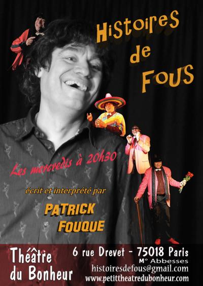 Buster Keaton parle, je l'ai rencontré ! Il s’appelle Patrick Fouque et présente seul en scène un spectacle riche de ces rires qui portent en eux une grande tendresse et une émotion forte. Histoire de fous, il n'y avait pas d'autre titre possible pour un spectacle qui nous reconnecte à l'essentiel tout en constatant l'absurdité d'un monde actuel devenu fou – devenu "Fouque" ?...Patrick Fouque ne se définit pas comme un humoriste, mais plutôt comme un comédien de théâtre. Son talent et son humanisme s'inscrivent dans la veine de Raymond Devos et de Pierre Desproges. Courrez le découvrir pour illuminer votre fin d'année 2016 de rire, d'émotion et d'esprit. Vous ne serez pas déçus.Au Théâtre du Bonheur, un lieu très convivial au cœur de Montmartre à Paris, à deux pas du métro Abbesses.