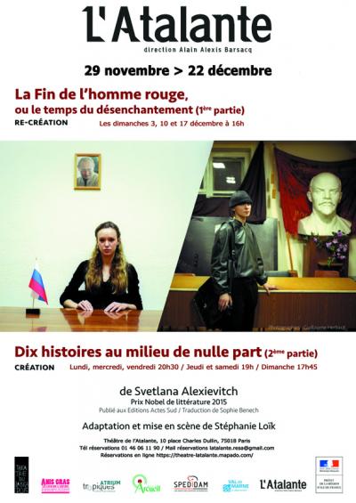 D’après des extraits de l’œuvre de Svetlana Alexievitch (prix Nobel de littérature 2015) le spectacle mêlant texte, chant, chorégraphie nous plonge dans la Russie actuelle. Un voyage qui ne laisse pas indemne et résonne par son universalité. Un travail à partir de plusieurs témoignages : sur un amour impossible entre une arménienne et un azerbaïdjanais ; sur la difficulté de la vie des travailleurs tadjiks à Moscou ; sur les questionnements des jeunesses russes et biélorusses.