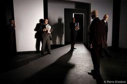Dès l’entrée dans la "petite salle" du théâtre des Célestins, le décor happe notre regard : de hauts panneaux blancs se trouvent repliés les uns contre les autres sur un côté de la scène. De quoi piquer notre curiosité. La représentation commence, les panneaux s’animent tels les pages d’un livre. Tournés un à un, ils finissent par dévoiler le décor : un intérieur lisse et blanc qui sera le bureau de l’étude d’un avoué. C’est le livre de Bartleby qui commence.La nouvelle de Melville présente ce personnage mystérieux : Bartleby est copiste ; engagé par un avoué dans son étude, il effectue un travail soigné mais refuse tout ordre quel qu’il soit. Il "préférerait ne pas...". Ne pas quoi ? Nous ne le saurons jamais vraiment.Bartleby est un héros de l’opposition, de la résistance. Il s’impose petit à petit comme le symbole de cette lutte contre toute forme d’autorité. Il s’impose physiquement, refusant de quitter l’étude. L’intrigue se déroule ainsi à huis clos et repose entièrement sur l’étrange présence de cet homme quasi irréel. La tension va crescendo avec son mystère. Au lieu de se dévoiler, il se referme toujours plus. Rien ni personne ne peut le déloger de son bureau. Le problème ? Il n’y en a pas vraiment ; si ce n’est que cet homme n’entre pas dans la "norme". Ce sont les autres, dérangés par sa présence silencieuse, qui sont inquiets et vont finir par abdiquer en quittant les lieux. Les pages tournent et Bartleby reste.Incarné par Yann Collette, excellent dans un rôle qui mêle douceur et rigidité, ce héros atemporel nous captive durant toute la représentation. Il est entouré par quatre comédiens, très bons eux aussi, qui apportent une pointe de légèreté et d’humour (grinçant) au sein d’un climat tendu. Tous nous tiennent en haleine jusqu’au bout. Plongés dans cette atmosphère étrange, soulignée par une musique lancinante et omniprésente, nous attendons la chute. Elle se fait bien attendre ; cependant, la lenteur de l’action est compensée par des effets de mise en scène qui réjouissent la vue. Le livre géant s’ouvre et se replie sous des jeux de clair-obscur ; des lignes d’écriture défilent par saccades sur ses pages blanches immaculées ; la voix-off du narrateur retentit alors pour les lire. Les héros se trouvent ainsi pris entre des feuilles de plâtre mobiles qui figurent l’espace. A leur jeu de s’adapter selon la configuration des lieux : muet derrière la lucarne de la dernière page, dynamique et parlant devant les panneaux ouverts. Seul Bartleby reste statique et silencieux, figé entre les deux mêmes pages du début à la fin. Quand le livre se referme, après une heure cinquante d’effeuillage, le mystère du personnage continue à opérer. L’illusion théâtrale fonctionne.