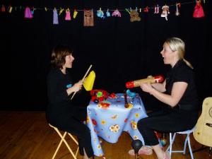 Sur le fond de la scène, pendus à un mince fil de fer, des robes de poupées, des petites voitures, des Barbies (et des Kens !), de la dînette, autant de vieux jouets qui évoquent l’enfance. C’est le fil directeur du spectacle : l’enfance de l’auteur et metteur en scène, Laura Desprein, est évoquée par polaroïds, c’est-à-dire par de brefs souvenirs, petits moments de vie évoqués en poème ou en musique. Sa mémoire de petite fille des années 70 tient à des détails, des bribes évocatrices, qui deviennent nos propres madeleines : qui ne s’est jamais chamaillé avec son petit frère ? Qui n’a pas collé les photos de ses idoles dans un cahier ? Qui n’a pas construit de cabanes dans le jardin ?...Tous ces moments enfantins sont racontés à deux voix : Mirabelle de Nuit (quel joli nom !) se joint à Laura Desprein, qu’elle accompagne de sa guitare et de sa très belle voix. Ensemble, elles nous restituent les polaroïds : brefs points historiques (1971 : les morts de Jim Morrison et Louis Armstrong... ; 1972 : le scandale du Watergate, l’assassinat des athlètes israéliens aux JO de Munich... ; 1976 : l’été de la canicule...), courts poèmes traduisant des émotions passées, textes humoristiques au ton juvénile, et surtout, chansons... des années 70, bien évidemment ! Rappelez-vous... Alain Souchon, Michel Delpech, Maxime Le Forestier, Jacques Higelin, Sheila, Gainsbourg, Renaud, Marie Myriam (oui, bon, victoire à l’Eurovision oblige !), Nicoletta, Marie-Paule Belle... et la fameuse disco ("D-I-S-C-O" pour ceux qui ont l’air en tête) ! Autant de souvenirs musicaux qui nous plongent dans l’ambiance des seventies. Les deux actrices-chanteuses les interprètent à leur manière, mêlant leurs jolies voix et s’accompagnant de tout ce qui leur tombe sous la main (triangle, maracas, castagnettes...). Elles mélangent les styles, nous offrent des pots-pourris assez inattendus, et, croyez-nous, Daddy cool version jazzy, ça vaut le détour !Grâce à ce savoureux collage de textes et de chansons, Mirabelle et Laura nous font sourire, parfois rire. Leur enthousiasme est communicatif, à tel point que nous nous prenons à fredonner de vieux airs avec elle, à opiner du chef à l’évocation des goûters Prosper ou du magasine Podium, bref à replonger, en leur compagnie, dans la douce atmosphère de l’enfance. Leurs voix, une guitare et quelques textes bien écrits auront suffi à nous enchanter. Car Hit 70, pièce de théâtre et concert à la fois, est aussi un véritable bain de jouvence. Alors, ex-fans des seventies, courez donc vous ressourcer au théâtre des Marronniers !