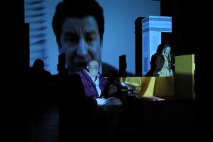 Extérieur jour. Lumière apocalyptique, silence. Un paparazzo, en haut d’un immeuble, observe les gens et attend le scoop qui lui fera réaliser la photo du siècle. Noir, musique entraînante. Intérieur jour, deux tueurs à gage demandent à une femme, assise derrière un comptoir, si elle a vu un homme avec une flûte. Noir, musique. Extérieur jour, lumière bleutée. Un homme décroche le téléphone dans une cabine publique. Un aveugle, au bout du fil, lui demande de décrire le ciel. Noir, musique. Extérieur jour, lumière rosée. Une clocharde monologue sur divers sujets. Noir...Vous l’aurez compris, Paparazzi se compose d’un assemblage de saynètes disparates. Le lien entre toutes ces séquences et tous les personnages, qui apparaissent, disparaissent et réapparaissent parfois : la fin du monde. Vous ne comprenez pas ? C’est normal. Il n’y a rien à comprendre. Mateï Visniec montre des bribes de vie en un jour de probable apocalypse. C’aurait pu être n’importe quel autre jour, une journée banale, dans n’importe quel endroit, en n’importe quelle saison, c’aurait été pareil. L’interrogation sur la fin de la planète et de l’humanité ne va jamais très loin. Toutes les ébauches d’histoires restent très superficielles. On regarde ces hommes et ces femmes marcher, courir, parler, tuer, prendre des photos... sans trouver l’intérêt de la pièce. Si ce n’est pas vraiment un questionnement sur la fin du monde, peut-être est-ce finalement une parabole sur la vie et la dérision des actions humaines ; certes. Cependant, face à un tel assemblage de tableaux, sans autre lien que les réapparitions épisodiques de personnages, on reste perplexe et on s’ennuie... un peu.L’idée de la mise en scène cinématographique, avec des "cut", symbolisés par l’obscurité, de courtes séquences juxtaposées et même l’intervention de la vidéo, n’est pas mauvaise. Sa réalisation est d’ailleurs plutôt réussie. Mais le texte ne nous convainc pas, pas plus que les comédiens dont l’interprétation est inégale (chacun jouant plusieurs rôles) et par moments trop artificielle. Cette histoire de fin du monde et ces histoires d’individus dans tous leurs états ne suscitent malheureusement pas notre empathie. Dommage. La troupe de l’Iris a, au moins, le mérite d’innover, de "rechercher" (comme elle le signale) des textes et des manières nouvelles de les mettre en scène. On attend la prochaine création !