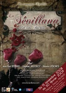 La Sévillana est un drame fantastique écrit en quatre saisons pour trois comédiens qui transporte au cur d’un univers intemporel situé à mi-chemin entre Barbe bleue et La Comtesse de sang. Plusieurs idées forces jalonnent ce spectacle. Le thème central est sans conteste la peur de vieillir, l’angoisse de la beauté fanée. Sujet sensible au regard d’une société narcissique qui tente de déjouer les règles fondamentales de la nature. Ce refus va de pair avec la notion de sacrifice qui est, elle aussi, omniprésente. Chaque personnage, à sa manière, se voit contraint de faire des sacrifices, qu’ils soient humains ou de l’ordre du compromis. Chacun doit sacrifier une partie de lui pour l’autre. Le secret, fil conducteur de la pièce, amène tension et suspense. Le secret de La Sévillana, le secret de Marie, celui de Henri, sont autant de mystères à élucider pour Matthieu qui se retrouve, bien malgré lui, au cur de ce nud infernal.Ce spectacle repose sur ce vieil adage : "Pour vivre heureux, vivons cachés", qui se trouvera malmené au fur et à mesure du spectacle. Un seul lieu : La Sévillana, la mystérieuse demeure de Marie ; un lieu unique qui se fait cocon dans un premier temps pour ensuite devenir prison (avec tout ce que l’enfermement dénote d’oppressant). Un spectacle sensible, à fleur de peau, à fleur d’âme, qui mêle les arts, qui mêle les émotions et exacerbe les passions.
