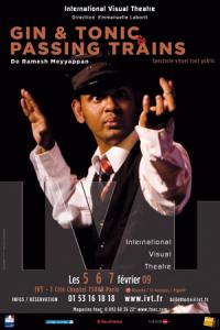Mettez dans un shaker des objets animés, du mime, du clown, une puissante capacité à raconter une histoire et des personnages forts... agitez, vous obtiendrez du théâtre "total" où le comédien est au cœur de sa création. Gin & Tonic & Passing trains est le fruit d’une collaboration entre Ramesh Meyyappan, comédien visuel et la compagnie Spike Theatre. Ce spectacle, une commande du Tramway Theatre à Glasgow, y a été créé en 2007. Il est ensuite parti en tournée dans de nombreux festivals à travers le monde. Sa participation au festival visuel de l’Esplanade Theatre à Singapour a été acclamé par la critique qui l’a nommé "un des must de 2007". Ce spectacle a aussi valu à Ramesh le prix du meilleur comédien aux Life ! Theatre Awards.Inspiré de la nouvelle fantastique de Charles Dickens The Signalman (L'Aiguilleur) sur une musique originale, ce cocktail d’humour noir vous fera comprendre qu’il ne faut pas mélanger le gin et les trains. Né à Singapour, Ramesh Meyyappan est devenu rapidement l’un des comédiens physiques les plus originaux du Royaume Uni. Son travail d’une grande finesse se base sur les techniques du mime, de la langue des signes et de la narration gestuelle.