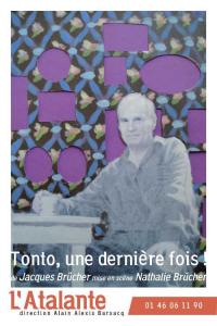 Orphelin, Frédéric évoque les bouleversements qu’entraîne la disparition du dernier de ses parents. Par une voix, une attitude, un geste, il passe de l’un à l’autre, virevolte, surfe et fait revivre sa famille, la famille Tonto. En une série de flash-back s’entremêlant avec un présent fragile, nous voilà entraînés dans une saga drolatique faite d’apparents petits riens, de dramuscules parfois grotesques parfois faussement anodins, de conversations ordinaires, mais derrière lesquelles se cachent de terribles peurs, où ressurgit le traumatisme de la guerre, les petits secrets qui se dévoilent pitoyablement, les manies têtues et héréditaires. Et puis, les instants qui précèdent la disparition du père, tissant entre lui et son fils des liens inaliénables, avant de laisser Frédéric à lui-même.Jacques Brücher joue tous les rôles avec gourmandise et un humour impitoyable, et on passe, comme ça, au détour d’un mot,
