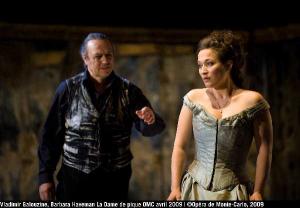 La Dame de Pique de Tchaikovsky occupe une place de choix au sein du grand répertoire. L’esprit slave qui plane sur cet opéra révèle avant tout l’âme d’un compositeur écorché qui détourne à son compte les arguments de Pouchkine pour mieux extérioriser sa sensibilité à fleur de peau. On le sait, voilà une histoire où se mêlent le fantastique et la réalité. Le rêve et la folie de Hermann, héros de l’histoire, sont confrontés avec une analyse psychologique d’une hantise. L’idée maîtresse de l’uvre, le conflit entre l’homme et le destin, entre la vie et la mort correspondait bien alors à l’état psychique du compositeur.Le romantisme fantastique, la progression de la métamorphose méphistophélique d’Hermann, le puits sans fond dans lequel il se jette sous l’effet de l’obsession et de la névrose, la mécanique prométhéenne qui le dévore : autant de thèmes abordés dans cette production, non pas simple mise en image par Guy Joosten qui ne sent jamais le bigoudi ou la charentaise car vraie création théâtrale. Les costumes de Jorge Jara et les décors de Johannes Leiacker sont originaux, somptueux dans leur glaciale simplicité.Joosten semble être remonté aux sources littéraires, au petit conte diabolique de Pouchkine où l’ivresse du jeu exclut tout autre sentiment et mène à la folie. On le sait, Tchaïkovski donne au héros Herrmann une dimension à la fois plus sentimentale et plus humaine. Ici, il aime pour de bon Lisa, qui n’est plus la pupille malheureuse de la comtesse aux trois cartes, mais sa petite-fille. C’est pour elle qu’il veut percer le secret qui devrait lui donner les moyens de l’épouser. Egaré par sa passion des jeux, de l’amour, des hasards, il ne supportera pas de perdre là où il avait cru détenir la certitude de gagner. Son suicide dans une insoutenable indifférence générale sera inévitable."Prima la musica !" C’est bien elle qui l’emporte dans le tourbillon que lève pour elle Dimitri Jurowski. En terrain conquis d’avance, le Moscovite embrase ce cauchemar d’un damné. Sous sa baguette Tchaïkovski prend feu et rutile comme un diamant noir. Impossible de résister au torrent qu’il déclenche. Avec ces churs immenses (on les dirait tous sortis des bords de la Volga) qui se reçoivent comme des uppercuts en pleine poitrine, le cast est unique, sidérant. Impossible d’adresser un reproche sérieux à qui que ce soit. Une première à l’Opéra de Monte-Carlo qui restera dans les annales. Si après un Wagner de belle facture en janvier dernier, Garnier se prend maintenant pour une annexe du Bolchoï, il y a vraiment quelque chose de réjouissant dans la Principauté.Jean-François Lapointe, campe un Prince Eletsky de classe supérieure, luxueux, superbe, grandiose. En un air à tirer les larmes et une forte silhouette intelligemment croquée ailleurs, le baryton s’impose sans peine. Voilà un Onéguine en puissance ! Dimitri Ulianov (Tomsky), Adrian Sampetrean (Sourine), la ribambelle de petits rôles tous difficiles mais bien en place, finement bien dessinés, ne méritent que des éloges. Barbara Haveman en Lisa bouleversante et pathétique est au meilleur de sa forme. Eva Powdles, comtesse impériale et droite comme un "i" décati éblouit par sa présence, son jeu, son humour aussi.Mais la vedette du spectacle reste Vladimir Galouzine qui s’est, semble-t-il, identifié corps et âme au personnage de Hermann qu’il chante depuis près de vingt ans. Un sacerdoce. Malgré trois cent cinquante représentations, la voix n’a rien perdu de sa puissance ni de sa souplesse, de ses couleurs, elle s’est même enrichie on dirait. Son jeu halluciné de vieil enfant fragile et désemparé reste jusqu’à présent inégalé.