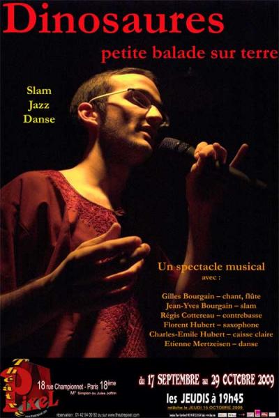 Avec Gilles Bourgain (composition chant flûte), Jean-Yves Bourgain (slam), Régis Cottereau (contrebasse), Charles-Emile Hubert (caisse claire), Florent Hubert (saxophone clarinette), Etienne Mertzeisen (danse)