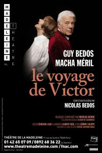 Telle l’une des trois Parques tenant le fil de la vie, Macha Méril l’embobine et le débobine adroitement au gré du souvenir dans le respect d’un oubli maladif. Nicolas Bedos s'inspire, tout à la fois, d’une histoire qu’il a vécue et de la volonté autobiographique de montrer, dans ces états les plus inattendus (comme au réveil), un père qu’il aime au point de souhaiter faire partager au public connaissant mieux l’humoriste que le comédien et encore moins l’homme dans sa vraie vie, ce qu’en général, seul un fils garde secrètement au fond de son cur. La dessein de Nicolas Bedos de vouloir que son père incarne le personnage masculin de son uvre, Le Voyage de Victor, n’est analytiquement qu’un regard en miroir posé sur l’avenir confirmé par son père : "Nicolas s’est inspiré de moi le matin, de mes angoisses." Ce brossage quelque-part, donc auto-fiction, transporte les spectateurs une heure durant, dans un carrosse conduit par une femme ou tout simplement la femme pour idéaliser : celle de l’amour conjugal capable d’un altruisme tel, que l’abnégation motive pour sortir un être qu’elle aime apprend à aimer ou a aimé de l’amnésie à laquelle un accident de la route l’avait conduit. Mais alors, pourquoi cette incertitude sur les temps du verbe aimer que la mise en scène cultive de manière intrinsèque dans la feinte ou l’assomption ? Pourquoi cette pudeur, ce respect trempé d’allocentrisme qui n’ose dire son nom ? Tout simplement parce que Nicolas Bedos est certainement un garçon plein de sensibilité sachant réserver le pathos jusqu’à le doser pour l’élever au rang qu’il mérite dans sa mise en scène, à ne désirer le laisser poindre que dans un dernier acte par un coup de théâtre qui donne à l’amour sa plus belle définition, celle qui fait dire à Guy Bedos "aimer, c’est tout supporter", comme le dit aussi Bossuet en parlant de l’amitié.A l’heure où le rideau se lève sur la scène du théâtre de la Madeleine, seul un arrière plan bleu nuit comme un nuage flou sur la mémoire perdue du protagoniste et un éclairage sobre viennent introduire la comédie tactique, pleine de charme et de diplomatie de Macha Méril, libre de disposer de ces éléments scéniques en complément d’un jeu ambigu pour diffuser lentement en fragrance, une vérité comme la ferraille dans un mur de béton où la voiture est venue s’encastrer. L’amnésie a bien sûr ses limites et, pavée d’absence ou lancinante comme la douleur, elle sait alors faire surgir le meilleur comme le pire. C’est ici précisément qu’entre en scène le souvenir de celui qui n’est plus, le fils aimé, raconté, décrit dans l’empathie d’un père que la perte de mémoire arrive autant à détruire qu’à faire surgir comme des flashes irrépressibles attachés plus aux entrailles qu’au cerveau. Victor et Marion ont un secret lourd à porter, et l’amnésie de l’un semble être un palliatif à la douleur de l’autre dans cette funeste réminiscence.L’alchimie du duo Bedos-Méril outrepasse leurs propres capacités de comédiens, pour faire naître au public attentif leur vraie nature humaine remplie d’affects, invitée là à se montrer toute nue quand le malheur frappe à leur porte comme à la nôtre, tous humains que nous sommes.