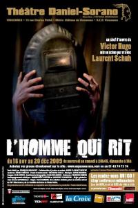 "L’exception, c’est vous. Vous êtes la chimère, et je suis la réalité. Je suis l’Homme, je suis l’effrayant Homme qui rit. Qui rit de quoi ? De vous. De lui. Je ris : cela veut dire : Je pleure". L’universalité de L’homme qui rit en fait l’un des livres les plus essentiels de la littérature. Gwynplaine, ce lord sur lequel l’Angleterre du XVIIIe siècle a fait graver un rire horrible, est à lui seul le symbole d’une humanité anéantie, livrée à la vanité et à l’infamie. Son "rire de force" contient en germe la révolte d’un peuple écrasé sous le joug des princes. Il scandalise et il paralyse. Il assiège et vainc. Il est l’annonce d’"un dégel sombre", d’une marche en avant finale, pour en finir avec ce monde corrompu, en dérive perpétuelle. Une piste foraine, un théâtre d’ombres, deux miroirs, une malle et Laurent Schuh, corps total, voix de nulle part… La langue Hugolienne s’agite, s’anime, se recrée, ondoyante et pétrifiante.Les mots d’Hugo, son réalisme magique, sont ici portés par un voyant ! Laurent Schuh hante le roman, le possède, s’en nourrit, pour nous en restituer la quintessence. Son jeu, empreint d’une troublante justesse, a la vertu des substances illicites. Nous voilà sous hypnose, entièrement voués au Génie de l’écriture ! L’Homme qui rit est en chacun, et chacun est en Laurent Shuh. Plus qu’un jeu de miroirs, une rencontre. Absolue.