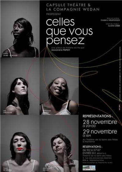 Pétillante, troublante, déjantée, malicieuse, émouvante, poétique... Chacune à sa manière, des femmes répondent aux questions d’une journaliste. Elles s'expriment sur leur vie, sur ce qui les a fait devenir femme, ce qui les empêche de l'être. Ici, point d'intrigues ou de rebondissements. Juste de l'intime et des émotions. Désirs et joies de vivre s’entremêlent aux blessures et aux souvenirs. Entre chaque portrait, un intermède : décalé, dansé, chanté.Celles que vous pensez une multitude de femmes aux facettes multiples. Un spectacle touchant où les sujets graves sont traités avec humour et délicatesse. Une galerie de portraits écrits par une femme, incarnés par cinq comédiennes, confrontées à l'imaginaire d'un homme, le metteur en scène.
