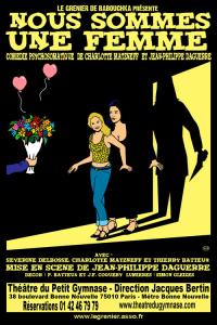 Camille, beau brun, charmant et charmeur, facteur à ses heures quand la cité sommeille, sort de sa sacoche quelques tours de magie et livre, sans accusé de réception, des airs de guitare, touche personnelle.La pièce s'emporte dans un tourbillon final où chansons et sentiments tricotent le tempo mené tambour battant par trois comédiens, trois truculent comédiens : la sublime Séverine Delbosse, la pétillante Charlotte Matzneff et le talentueux Thierry Batteux. C'est en maestro que Jean-Philippe Daguerre a signé la mise en scène de cette pièce. Il enthousiasme encore une fois le public par la qualité du répertoire théâtral travaillé et interprété par une génération de comédiens attachants, sincères et volontaires. Ses mises en scène coulent des jours heureux dans les théâtres d'avant - Seine. Avec Jean-Philippe, le théâtre s'habille en Daguerre. La compagnie Le Grenier de Babouchka foisonne de pièces géniales moissonnées dans un grand vent d'auteurs cueillant la prose colorée pour le théâtre. Nous sommes une femme, Nous sommes des spectateurs amoureux de cette belle pièce.