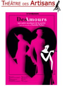 Dans un train, deux jeunes mariés découvrent les prémisses de la vie de couple en plein voyage de noces... Deux amants au téléphone qui se cherchent, deux amis dans un bar, un travesti dans sa chambre, un auteur et une admiratrice dans un salon... autant de situations que le spectateur feuillette à travers une dizaine de scènes en s'étonnant du caractère moderne de cette vie dissolue des années folles ! Ce qui les réunit dans chaque scène, c'est l'alcool. Il délie les langues et les âmes. Et c'est là que disparaît le carcan mondain pour montrer l'âme à nu.Journaliste, poétesse, scénariste, écrivaine américaine, Dorothy Parker (1893-1973) est connue pour sa plume mordante et ses idées libertaires. Parmi ses nombreux écrits, figurent une dizaine de nouvelles percutantes, croquant avec délices les murs américaines de l'entre-deux guerres.A cette époque, les femmes américaines se libèrent, raccourcissent leurs jupes et leurs cheveux, les hommes s'infantilisent... Tout est dans le sous-entendu qui amène forcément le malaise et les excuses. Il faut garder une attitude de bon ton en cachant ses sentiments. Voilà ce que dénonce l'auteur qui se moque de la bonne société new-yorkaise.Les personnages sont tristes, pathétiques, dramatiques mais la plume corrosive et poétique de Dorothy Parker nous fait toucher la profondeur des sentiments, la décadence malicieuse et l'humour des personnages. Et l'on rit de reconnaître des situations vécues, de nos propres défauts qui ont traversé le temps sans prendre de rides... Si les tabous sont depuis tombés, il reste encore un sujet qui ne s'explique pas : l'amour entre deux êtres, sujet de toutes les discordes et de toutes les incompréhensions.Les comédiens de la compagnie "La Tornade", dans de splendides costumes des années 20-30, sont très glamours. Ils gardent une note d'espièglerie, à l'image des murs dissolues des années folles. DesAmours offre une jolie galerie de personnages bien interprétés par les trois jeunes comédiens talentueux.La mise en scène de Cassandre Vittu de Kerraoul est sobre et astucieuse : on passe d'une scène à l'autre de manière fluide par la lumière, un accessoire ou un personnage. La musique de Glenn Miller, Benny Goodman, George Gershwin scande chaque scène et accompagne les turpitudes des personnages. On passe un excellent moment de détente, de rire et de poésie. Bravo !