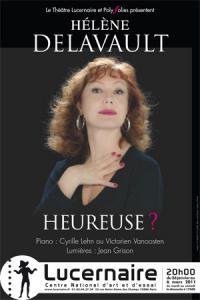 On le sait, le bonheur est désormais obligatoire... Las, dit la chanteuse, nous, les femmes, avons une fâcheuse tendance à le chercher essentiellement dans l’amour ! La fil du spectacle est là. Hélène Delavault va le tisser avec la désinvolture et la finesse, le charme et la précision de la grande professionnelle qu’elle est. On l’avait déjà vue au Lucernaire l’année dernière dans Un Soir à Montparnasse, elle y revient avec Heureuse ?. Et notre plaisir est le même.Le plaisir de retrouver une cantatrice qui joue de sa voix sans effort et une comédienne qui s’amuse sur scène. Et puis, il y a l’intelligence de son répertoire, une vingtaine de titres. Avec des classiques comme Mon Homme à qui elle donne une nouvelle couleur ou le désopilant Mariage mondain qu’elle "enlève" si bien, comme me souffle ma voisine ravie. Avec des trouvailles telle cette fort belle chanson de Jonasz, J’vieillis, où la chanteuse se révèle très émouvante et précédant la chanson, un texte de Mme de Lambert de 1732, sur les avantages de la vieillesse qui enfin nous affranchit de l’opinion d’autrui... Car Hélène Delavault aime autant les mots que la musique et la soirée est piquetée de délectables citations. Elle est d’ailleurs aussi auteure. Citons une bien réjouissante Vie pas rose de la Belle au bois dormant harcelée par son chevalier et qui ne rêve que d’une chose : dormir. Ou bien une Ode à la chute de reins (les siens !) mise en musique par son compère le talentueux musicien, Cyrille Lehn.Fantaisie, drôlerie, grain de folie, autant de qualités dont elle fait depuis longtemps profiter les auditeurs de France-Culture dans l’émission Des Papous dans la tête. Mais attention ! La dame peut aussi être grinçante. Elle surprend son public, béat et conquis, en finissant son spectacle avec un texte de M. Mac-Nab, proche du cauchemar, sur ces ftus dans le formol, ni nés, ni morts... peut-être le secret du bonheur ! Allez champagne...