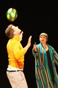 Dans le cadre des Caravanes de cirques, le Grand Rond accueille ces deux prochaines semaines deux compagnies circassiennes, en l’occurrence la compagnie du Cirque désaccordé. Le public est tout de suite plongé dans le feu de l’action : Antonia, lasse des aventures de son mari, tente de se suicider pour la énième fois. Celui-ci lui explique pour la énième fois, qu’un couple heureux, c’est un couple libre. Ils nous retracent alors leur histoire conjugale, leurs aventures et leurs mésaventures.Les deux artistes ont travaillé une adaptation du texte de Dario Fo, entrecoupée d’interventions de leur propre création, que ce soit par le texte, la jonglerie ou le clown. Les personnages entrent et sortent de leur situation comme ils entrent et sortent de leur décor pour aller dans le public. Parlons justement de ce décor, qui rappelle bien, par la piste de cirque, les racines artistiques de Valérie et Laurent Pareti : une scénographie simple, mais efficace (parfois un peu bringuebalante, mais ils en jouent très bien). N’oublions pas l’homme de l’ombre, Franck, qui orne le spectacle de bruitages et musiques en tous genres avec une grande justesse.On retrouve l’écriture grinçante de Dario Fo, dérangeante par la véracité de ses mots, avec des personnages qui pourraient être n’importe lequel d’entre nous. On est peut-être tenté de reprocher à ce spectacle une inconstance au niveau du jeu des comédiens, due aux ajouts de textes : à force de rentrer et sortir de leur situation, les personnages perdent de leur sincérité. Attention, on nous offre quand même de très belles images et métaphores, notamment par la jonglerie, et il faut également noter cet instant superbe et sûrement trop court (on en veut plus !), où la comédienne intervient en clown. On sent encore une fois l’expérience du cirque, et la justesse des émotions que transmet Valérie Pareti par ce moyen.On trouve presque l’espace trop petit pour ces deux boules d’énergie, qui nous transmettent leur plaisir de jouer et leur belle complicité sur la scène. Bref, un spectacle où on ne s’ennuie pas, qui trouvera les quelques épices qui lui manquent au fil des représentations !
