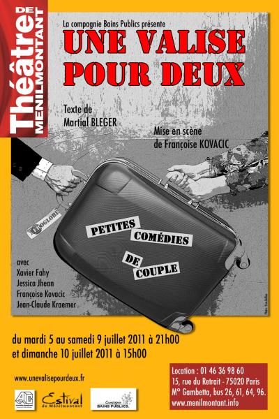 Kaléïdoscope d'histoires de couples en partance. Un voyage au gré de situations drôles, tendres ou cruelles où la valise, objet inerte, encombrant et sournois, sert de détonateur. Mêlant le grave et le léger, le quotidien et l'improbable, ces petites tranches de vie ressemblent aux nôtres. Les personnages, tour à tour ordinaires, odieux, sublimes ou simplement humains nous font rire sur nous-mêmes et souvent aux dépends de nous-mêmes.Douze séquences, douze situations de crise, jouées par 4 comédiens, deux couples, un plutôt la trentaine, l'autre la cinquantaine. Comme dans la vie, les générations, les personnages se croisent, s'affrontent et s'aiment.