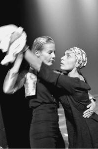 En adaptant à la scène le grand roman d’Agustin Gomez-Arcos, Gérard Vantaggioli a créé l’événement. Un événement qui a ému, bouleversé et enthousiasmé les spectateurs de l’avant-première de ce spectacle, aussi prenant par son sujet qu’original dans sa forme théâtrale même. La réussite de cette entreprise, il la doit aussi beaucoup à ses deux actrices... et d‘abord à Stéphanie Lanier que nous connaissions déjà pour l’avoir vue précédemment dans Le Jeu de la mémoire sur ce même plateau. Moins habituée semble-t-il au jeu théâtral qu’à la danse, sa profession initiale, Julia Bruni, dans sa prise du rôle principal, sait elle aussi être très émouvante. La mise en espace nous fait bien sentir cependant à quel point les deux personnages, dans leurs caractères respectifs, s’inscrivent au sein même d’une forte complémentarité obligée qui les rend inséparables, comme le jour et la nuit, le réel et le rêve... ou plutôt le cauchemar !Ana Non est une femme âgée de 75 ans dont le mari et ses deux premiers fils sont morts dans la guerre civile qui ensanglanta l’Espagne. Son troisième fils, Jesus, est en prison dans le nord du pays. Sachant que ses propres jours sont comptés, elle part retrouver ce fils, le seul qui lui reste, pour lui apporter un pain aux amandes, le pain des retrouvailles... C’est ce long voyage fatal et initiatique qu’elle effectue à pied entre les rails de la voie ferrée sur laquelle circule le train qu’elle aurait dû prendre mais qu’elle n’a pas les moyens financiers de s’offrir, que nous raconte ce spectacle, en images fortes qui fleurent bon un fantastique du quotidien, partie intégrante de la culture espagnole.Comment ne pas penser alors à Luis Bunuel, cinéaste plus espagnol que surréaliste, et à sa Voie lactée, comme à son Nazarin pour le thème du voyage, à Goya et ses Désastres de la guerre, à Murillo, entre autres ?...