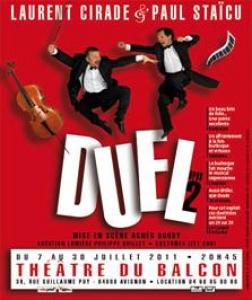 Duel opus 2, c’est la rencontre d’un pianiste et d’un violoncelliste complètement fous dont la virtuosité musicale et burlesque offre une véritable fantaisie. Leur indéniable talent musical leur permet de faire ce qu’ils veulent sur scène... comme jouer du piano couché au sol ou bien en équilibre sur le violoncelliste, ou alors offrir un numéro burlesque exceptionnel de l’opéra Carmen digne de Chaplin. lmpossible de décrire ce que font les artistes de Duel tellement c’est exceptionnel. Il faut le voir pour le croire !Ces deux-là ont été touchés par une douce folie virtuose. Ils s’éclatent sur scène autant que le public. Après une tournée internationale, Laurent Cirade et Paul Staïcu sont de retour en Avignon pour nous faire partager leur monde décalé. C’est bon pour les oreilles et pour les zygomatiques. C’est surtout un des spectacles à voir absolument pendant le festival. Un vent de folie !