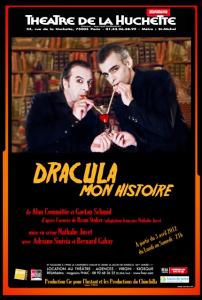 s’accrochant à des parenthèses de vie de leur maitre. Le caractère de situation alterne entre mystère et loufoquerie, improvisation et poésie. Ils transmettent la culture Dracula à leur façon, véhiculent le mythe, sa vie et son uvre sans contrefaçon. La complicité entre les deux personnages créent une harmonie dérivant sur les contradictions d’interprétation et sur une euphorie décomplexant l’étrangeté de Dracula.Le décor, un mélange des genres astucieux et générateur de suspens. Adriano Silivia et Bernard Gaba conditionnent le personnage de Dracula à des évocations librement improvisées. Le ton de la conférence s’accorde à l’emballement, le verbe employé décroche des rires, l’énergie déployée par les deux comédiens amusent le public.Le rythme est la clé de la mise en scène. Un spectacle rendu vivant par la passerelle interactive étendue entre le public et la proximité des comédiens. La subtilité de cette création réside aussi dans la façon dont le mystère est abordé. L’image du sanguinaire Dracula est effacée pour présenter à la place un gentil monstre humainement sensible.Ce spectacle intergénérationnel découvre l’histoire d’un mythe racontée à contresens par deux bons comédiens, le tout servi par une mise en scène conceptualisée dans le style cabaret. Cette pièce captive car à la surprise se mêle les rires, aux rires s’entremêlent les délires.