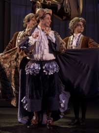 Le Bourgeois gentilhomme : toute l’intrigue est contenue dans le titre. Monsieur Jourdain, riche bourgeois, pense pouvoir tout acheter, y compris la noblesse. Payant un maître d’armes, un maître de philosophie, mais aussi des maîtres de danse, de musique, ainsi qu’un tailleur en vogue, il pense pouvoir acquérir grâce à eux les bonnes manières qui lui manquent pour intégrer la classe sociale qui le fait rêver. Le pauvre bougre est grotesque, son obsession de se faire gentilhomme, "homme de qualité" comme il le clame durant toute la pièce, l’est tout autant. On se moque de lui, certes ; mais le génie de Molière est de passer au crible l’ensemble de la société de son temps. Les soi-disant "maîtres" ou gens de qualité, tel le Comte, qui l’entourent, en prennent pour leur grade également : cupides, intéressés, malhonnêtes, tous utilisent la naïveté et l’ambition de Jourdain pour lui extorquer des fonds. In fine, quel est le plus ridicule et le plus critiqué ? Pas sûr que ce soit notre Bourgeois.C’est donc une superbe intrigue, doublée d’une histoire de mariage entre deux jeunes gens, bien évidemment empêché par le père Jourdain (comédie oblige). Mais, nous direz-vous, pourquoi monter encore cette comédie aujourd’hui ? Pourquoi en donner une énième version contemporaine ? Tout simplement parce que le texte de Molière est génial. Sa critique de la bourgeoisie qui veut "péter plus haut que son cul" est transposable de nos jours, même si les classes sociales ne portent plus les mêmes noms, même si le rêve n’est plus forcément de porter une particule, mais plutôt d’être célèbre. Son humour, et notamment le comique gestuel qu’il instillait toujours dans ses pièces, fonctionne toujours : on s’esclaffe devant les poses burlesques de Pascal Rénéric, un Monsieur Jourdain impeccable, on rit de ses ridicules, on rit aussi du caractère caricatural des gens de qualité qu’il fréquente, tous des "précieux ridicules", qui en font des tonnes pour sembler dignes de leur condition.Denis Podalydès, sociétaire de la Comédie Française, grand acteur de théâtre et de cinéma, réussit son pari : sa mise en scène est dynamique, ses comédiens justes, les costumes, qu’il a confiés à Christian Lacroix, clinquants à souhait et la présence sur scène de chanteurs, de danseuses et de l’Ensemble Baroque de Limoges pour jouer la musique de Lully donne tout son sens au terme de "comédie-ballet". Ne l’oublions pas, Molière avait effectivement écrit cette pièce pour le Roi et la Cour avec la collaboration de Lully ; le genre de la comédie-ballet mêlait ainsi scènes de théâtres classiques et séquences de musique et de danse. On retrouve donc avec plaisir l’esprit de ce genre théâtral dans la mise en scène de Denis Podalydès. Son classicisme pourrait lui être reproché, mais il convient bien au texte et aux intentions de Molière en son temps. Et puis l’on rit beaucoup devant cette nouvelle version du Bourgeois gentilhomme : n’est-ce pas l’essentiel quand on va à la comédie ?