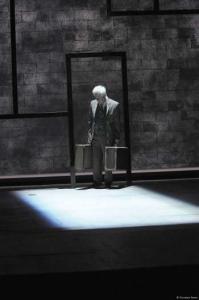 L’intrigue de la pièce d’Arthur Miller, qui date de 1949, reste tout à fait actuelle. Le problème des relations familiales, notamment des rapports père-fils, le thème des illusions perdues ou encore de l’aveuglement de soi-même sont des thématiques universelles et atemporelles. En outre, même si Claudia Stavisky ne s’est pas forcément intéressée à Mort d’un commis voyageur pour cette raison, c’est une pièce relativement tragique qui fait écho à la crise économique actuelle. Willy Loman, commis voyageur de sa profession, vient d’être "remercié" alors qu’il est en fin de carrière et s’est dévoué corps et âme à son entreprise pendant plus de trente ans. Combien d’employés cinquantenaires ne peuvent se reconnaître en lui ? Combien, comme Willy, ont passé leur vie au travail en espérant obtenir une reconnaissance, une gratification, une médaille qui n’est jamais arrivée ? Grandes sont leurs désillusions lorsqu’ils se rendent compte qu’ils n’ont été qu’un pion sur l’échiquier du monde du travail. Le texte de Miller montre avec beaucoup de justesse l’usure d’un homme et son effarement lorsqu’il perd l’emploi auquel il a voué sa vie.Claudia Stavisky l’a bien interprété en le retraduisant pour l’occasion et en lui rendant sa fin initiale, que Miller avait dû corriger pour clore sur une note moins pessimiste. Elle met ainsi en avant le caractère sombre de l’intrigue. Elle ne s’appesantit pas sur la problématique de l’impitoyable univers de l’entreprise, mais montre plutôt un homme en fin de vie, délaissé par ses fils, soutenu par une épouse qui ne l’intéresse plus vraiment, en quête de sens. S’il ne ramène plus l’argent nécessaire au foyer pour payer les traites, à quoi sert-il ? C’est cette interrogation philosophique sur le "troisième âge" que met en relief la pièce créée au théâtre des Célestins par sa directrice. Comment un homme, à l’heure où il a fini d’élever (avec plus ou moins de réussite) ses enfants, où il a payé sa maison, accompli son devoir d’employé jusqu’au bout de sa carrière, peut-il continuer à vivre et à espérer ?A partir du moment où un metteur en scène possède un texte aussi riche, il se doit de le mettre en valeur, de ne pas l’occulter par une mise en scène tape-à-l’il. C’est ce que fait Claudia Stavisky. Ses acteurs sont convaincants, sa scénographie sobre, le décor de sa pièce simple et efficace : une structure métallique, qui montre à la fois la proximité des individus qu’aucun mur ne sépare et leur emprisonnement (dans leurs rêves auxquels ils n’arrivent pas à renoncer, dans leurs préjugés, dans leurs rancurs...). Seules quelques scènes, telle que la rencontre au bar du père et de ses deux fils, prennent place dans un cadre un peu plus sophistiqué, qui n’évoque pas une époque précise mais sert plutôt à créer une atmosphère. On se laisse ainsi emporter dans cette Amérique des années 1940 qui pourrait tout aussi bien être notre France des années 2010.