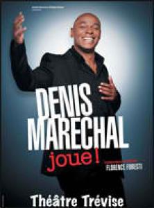 Denis Marechal a tout pour plaire, il est merveilleusement drôle, très sympathique et possède un sourire charmeur. Révélé à Graine de star dans les années 90, il enchaine au Carré Blanc puis, quelques années plus tard, tente sa chance en solo. On peut dire que ça lui a bien réussi. Cela fait maintenant un bon moment que Denis Marechal fait exploser de rire des salles entières avec des personnages marqués et attachants. On se souvient tous de Geoffroy, le squatteur fumeur que l’on préfère savoir chez les autres que chez soi.Aujourd’hui, fort de son succès, Denis joue les prolongations au théâtre Trévise avec un nouveau spectacle Joue !. Pour ce faire, Denis collabore à une comique qui cartonne depuis un moment maintenant : Florence Foresti. Un one man show qui tourne depuis un an et qui semble ne lasser ni le public ni Denis. Avec joie, une grande énergie et en toute simplicité, Denis Marechal monte sur scène pour nous offrir près de 2 heures de bonheur.Les années passent et la vie change. Ou bien pas tant que ça pour certains. Entré dans la quarantaine depuis peu, l’entourage incite à s’installer et à procréer. Oui, mais quand on ne se sent pas encore tout à fait prêt ?... Avec beaucoup d’humour et une pointe de folie, Denis Marechal évoque ce sujet brûlant du couple et des enfants. Il commence par les premières rencontres et la difficulté de faire comprendre à l’autre son attirance pour elle, jusqu’à l’éducation des enfants qui n’est pas une sinécure. Au passage, il nous parle des moyens de contestation des rappeurs dans leurs clips, la difficulté de se remettre d’une rupture, Facebook, et une mention toute spéciale pour le grand retour du Ruth !!!Une réussite de bout en bout, des lumières travaillées, une entrée et une sortie soignées (très important !), une scénographie simple et exploitée. On comprend pourquoi le Théâtre Trévise ne veut pas se séparer si vite de Denis et le garde jusqu’à la fin de l’année.Un spectacle à voir pour passer une excellente soirée que l’on soit célibataire, en couple, jeune marié, nouveaux parents ou grands-parents. Denis Marechal, un comédien qui interprète des personnages plutôt looser alors que tous les soirs, il conquiert la salle et surtout la gente féminine.