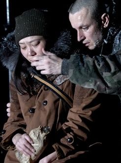 Un clair-obscur dévoile deux personnages, chacun dans une pièce, l’une se vernissant les ongles des orteils, l’autre zappant devant son écran de télévision, une bière déposée à ses pieds. Tous les deux fredonnent un air entendu à la radio, un morceau de variété aux accents pop. La scène n’est pas joyeuse, le ton est posé. Ces deux solitudes cohabitent mais ont du mal à se rencontrer. Yuko, immigrée japonaise au Canada (son nom l’a sans doute prédestinée à vivre dans cet état du "Yukon" qui donne son titre à la pièce), a fui son pays natal pour tenter d’oublier une tragédie familiale. Garin, Amérindien, orphelin de mère, est amoureux d’elle mais n’ose se déclarer.L’arrivée de Kate, adolescente en fugue et enceinte, va bousculer leur quotidien et réveiller leurs vieux démons. Cette troisième solitude va s’ajouter aux leurs, mais va permettre aussi quelques échanges que la maladie du père de Garin, Dad’s, va prolonger.Le thème de ce Yukonstyle, écrit par Sarah Berthiaume, est sombre, voire tragique. Chaque existence semble vouée au malheur, ce que souligne une scénographie assez glaciale : les protagonistes rentrent systématiquement couverts de neige dans l’appartement où se joue le quasi huis-clos, ils passent leur temps dans la pénombre ou sous des lumières froides produites par les écrans de l’ordinateur, de la télévision, par les néons de l’hôpital. Lorsqu'ils écoutent de la musique, c’est pour mieux s’enfermer dans leur bulle. Leur communication laborieuse est d’ailleurs accentuée par la configuration des lieux ; rarement ils demeurent dans une même pièce. Lorsqu'ils sont ensemble, ils se livrent à plusieurs reprises à des monologues, très poétiques, dans lesquels ils expriment leurs visions, plus ou moins compréhensibles pour le spectateur. Ces passages sont illustrés par une vidéo discrète, toute de noir et de blanc, qui se fond presque dans le décor.On est happé par cette mise en scène sophistiquée ; la noirceur de l’ambiance, savamment créée, est séduisante. On regrette cependant que les quatre héros n’évoluent pas, ou peu. L’histoire, très linéaire, finit par lasser, malgré l’ampleur des drames vécus par chacun et découverts peu à peu. La "vraie" rencontre attendue, et qui n’advient jamais vraiment, rapproche d’une certaine manière cette pièce contemporaine du théâtre de l’absurde des années 50 et de son nihilisme. Le texte est beau, intéressant, drôle parfois, notamment grâce au mélange des langues (le français aux accents québécois est rehaussé d’expressions typiques et ponctué de quelques vocables anglais très tendance), mais il s’offre comme un essai littéraire plus que comme un authentique dialogue théâtral. Pourtant bien servi par les quatre comédiens, il nous laisse froids, à l’image de l’atmosphère de Yukonstyle.