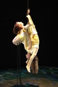 L'histoire se résume à l'amour de deux fillettes, lesquelles veulent vivre leur passion en cachet des adultes. Sur le plateau, l'immatérialité apostrophe le clair-obscur qui règne sous l'opaque fumée, laquelle rappelle la brume envahissant la campagne norvégienne. Pauline Barboux et Jeanne Ragu investissent l'espace et esquissent de leur grâce une chorégraphie sur les quadrisses. Discipline artistique exécutée à partir de quatre fines drisses noires sur lesquelles Pauline et Jeanne jouent en apesanteur de leurs corps avec l'élément. La pièce durant, elles vont et viennent, montent, s'agrippent l'une à l'autre, créent une danse adaptée à la mise en scène de Stéphanie Loïk. Un spectacle aérien qui introduit la fragilité des deux fillettes de la narration. L'équilibre est précis, bras et jambes dessinent des variations sentimentales, les ports de têtes assurent le prolongement des corps et affirment l'innocence des enfants exprimée par les voix-off.