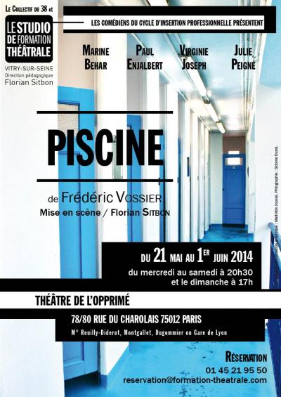 Les élèves du cycle d’insertion professionnelle du Studio de Formation théâtrale, présentent cette année, PISCINE une pièce écrite par Frédéric Vossier, commandée par Florian Sitbon, directeur pédagogique au Studio de Formation Théâtrale. Piscine vous permettra de découvrir ces quatre jeunes comédiens talentueux.