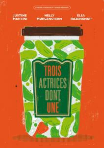 Trois actrices dont une, un trio formé en 2012 qui se revendique dans cette première réalisation. Elles se lancent dans l'écriture d'un texte, le mettent en scène et le jouent aussi. Autant d'audace mêlée de courage méritent d'aller les voir à l'Aktéon. Etre indulgent ne leur rendrait pas service pour la suite, se montrer sévère les culpabiliserait peut-être. Rien de tout ça, simplement écrire ce qui doit être dit : Justine Martini, Nelly Morgenstern, Elsa Rozenknop, votre Trois actrices dont une est une réalisation agréable à regarder. Vous y mettez du cœur à l'ouvrage, vous abordez l'absurdité avec rigueur, l'irrationnel avec fantaisie. Vous vous êtes osées à créer un spectacle sur les coulisses et les perversités de votre métier.Vous marchez à découvert sur des terres marécageuses. Votre effronterie et votre ténacité paient déjà car Trois actrices dont une est un spectacle réussi. Pourquoi réussi ? L'histoire de Véromartine a capté l'attention du public, il a ri de certaines scènes cocasses, il a applaudi avec sincérité, il a quitté la salle avec l'œil amusé, sur le trottoir, les mots allaient bon train. Ce sont ces petites choses qui font écrire qu'une pièce a plu. Le texte prête à rire, les costumes s'ajustent au corps, la scénographie se compose de trois fois rien qui font un grand tout.