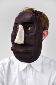Pour nous faire comprendre l’histoire, dynamiser sa mise en scène et nous permettre de ne pas confondre les personnages, Guillaume Bailliart joue avec leurs prénoms scotchés au sol : il les désigne ou se positionne dessus, et l’on comprend qui parle. On se croirait dans Dogville de Lars von Trier, avec son immense plateau noir, quasi désert, et des inscriptions blanches au sol pour uniques éléments de décor. Sobriété et efficacité sont les maîtres mots de ce spectacle. Pas de décor ? Ce n’est pas tout à fait exact : il reste la table, la fameuse table sous laquelle Orgon accepte de se cacher le temps qu’Elmire démasque Tartuffe. Là encore, le pari de Guillaume Bailliart est réussi : il nous fait rire en interprétant seul cette scène à trois personnages. C’est là son véritable exploit, car il n’est pas le premier comédien à mémoriser un classique français et à le restituer tout seul sur les planches ; il n’est pas le premier non plus à faire fi du décor. La réussite de cette gageure tient dans le fait qu’il a su couper intelligemment la pièce (et le personnage de Valère au passage) pour rythmer la représentation et qu’il s’est glissé dans chaque personnage, en modulant sa voix, en adoptant quelques gimmicks (Tartuffe, manipulateur clairvoyant, est le seul à s’exprimer les yeux ouverts, voire exorbités lorsqu’il ne contrôle plus sa concupiscence). Il s’éloigne ainsi d’une récitation sage du texte et nous divertit vraiment, retrouvant l’esprit farceur et moqueur de Molière. Loin de n’admirer que sa mémoire, nous saluons également son jeu d’acteur.