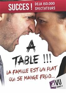 A table !!! est une comédie légère et rythmée de Pierre Fontes. L’histoire nous emmène dans le grenier de cette famille où le frère et la sœur se retrouvent "en cachette" pour préparer une surprise pour l’anniversaire de leur grand-père. Le grenier… lieu propice aux souvenirs d’enfance ! Tout y est : vieilles photos papier, cartons de vieux objets, lettres oubliées… C’est justement le passé de ces frangins frangines qui nous permettra de mieux comprendre leurs présents. Elle quitte son chéri, lui est dans une relation plutôt difficile... Mais tous deux s’aiment de cet amour fraternel qui résiste aux engueulades. Et des prises de bec, il y en aura ! Ils s’aiment comme chien et chat. Ils parlent de tout, travail, famille, sexe, chantent, dansent… Tous les ressorts du rires sont réunis et le public réagit au quart de tour.