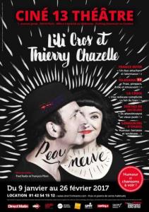 Les lumières se tamisent et ce jeune couple entre en scène. Thierry Chazelle, chapeau et guitare en main, accompagne Lili Cros, robe orange dentelée à pois noirs, au visage mutin et au sourire lumineux. Ils commencent à jouer de leurs guitares mutuelles et à chanter. Et, là, nous sommes en état de grâce !