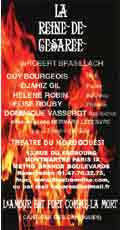 « La reine de Césarée » de Robert Brasillach mise en scène par Bernard Lefebvre est une interprétation magistrale qui remet en cause la censure littéraire non autorisée en France mais intrinsèquement pratiquée avec la redoutable arme de la rumeur. L’œuvre de Brasillach est tombée dans le domaine public et à ce titre cette tragédie dont le texte est admirablement possédé par chacun des comédiens doit pouvoir donner envie à ceux qui n’ont pas d’œillères d’oser « prendre un pull » au figuré s’il le faut mais on ne sort assurément pas « frigorifié» de ce grand travail de dramaturgie mais renouvelé curieusement de l’intérieur comme si l’ésotérisme si cher à l’auteur était venu là exorciser tous ses démons.