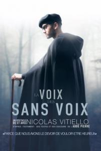 En fin de partie, les phrases prophétiques pleuvent. Des phrases écrites ou prononcées par l’Abbé, il y a vingt ou vingt-cinq ans, comme le danger des banlieues et ce chapelet de bombes autour de Paris. De telles banlieues, abandonnées de tous à elles-mêmes, ne peuvent que succomber à la tentation de l’intégrisme, leur dernier refuge. D’où la violence qui s’en suit et les bombes. Au fond, la seule manière d’être entendue. Nicolas Vitiello a monté ce spectacle en réponse à l’attentat contre Charlie-Hebdo. Dans cette cacophonie, la seule voix qu’il a entendue, c’est celle de l’Abbé Pierre : "Parce que nous avons le devoir de vouloir être heureux, nous sommes aimés et nous sommes capables d’aimer".