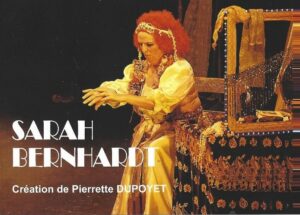 Pierrette Dupoyet endosse cette année la lourde et imposante histoire d'un monstre sacré qu'a été la comédienne Sarah Bernhardt. Tantôt aimée ou détestée, exubérante ou discrète sur certains côtés amoureux de sa vie privée, capable d'être homme ou femme sur scène, elle a tout fait avec excès. Exigeante sur les mises en scène, cruelle avec les autres comédiennes, elle n'acceptait aucun passe-droit.
