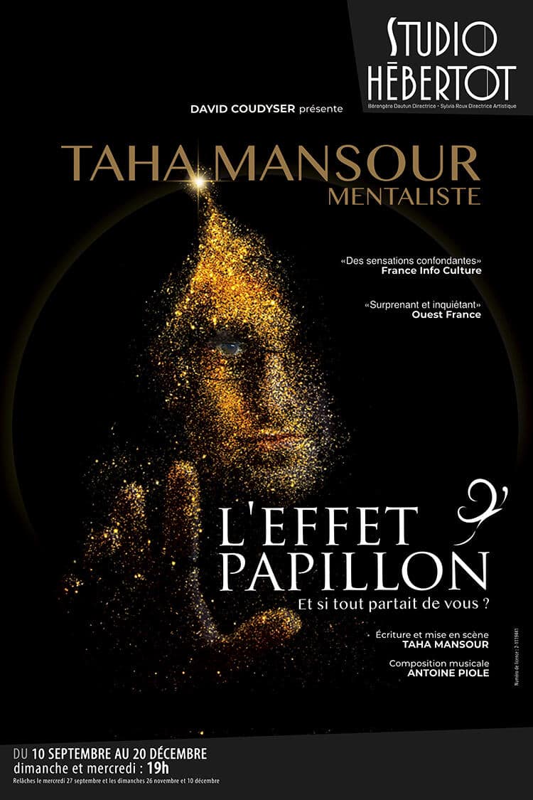 A paris, je suis retournée voir "l'effet papillon" de Taha Mansour, mentaliste. J'ai emmené une amie qui ne l'avait pas vu, et surtout qui ne le connaissait pas, et n'avait jamais assisté à un spectacle, qui ne ressemble ni à de la voyance, ni à de la magie. Taha nous entraine dans son histoire ou un battement d'aile de papillon peut transformer votre vie. Il est incroyable, il devine tout, et surtout ce que j'ai remarqué, c'est qu'il s'adapte à chaque public. C'est la troisième fois que je le vois, et à chaque fois, même si c'est le même "sketch" (je ne sais pas comment appeler ces différentes saynètes) selon le public, c'est autre chose, Je vous recommande ce spectacle pour vous évader du quotidien, et surtout d'essayer chez vous, de mettre en pratique tous ses conseils............Bonne chance