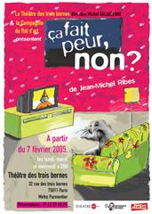 Ca fait peur, non ? est un paysage vaste, décalé, absurde et noir de notre société. Au travers des textes de Jean-Michel Ribes, trois comédiens jouent à se faire peur. Le sérieux est à laisser au vestiaire !Vous cherchez à partir en vacances ? Vous cherchez à dormir ? Vous cherchez un bureau de change ? Vous cherchez à vous faire élire ? Vous cherchez des jeux pour cet été ? Vous désirez savoir où se trouve le panaris ? Vous voulez savoir l’heure ? Vous cherchez un bon spectacle ? Vous voulez vous faire aimer de votre chef ? Ne cherchez plus, vous avez trouvé : Ca fait peur, non ? d’après Jean-Michel Ribes.