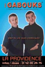 Ces deux-là ont un style qui leur est très propre. Contrairement à tous les duos comiques, vous ne retrouverez pas ici l'esprit de l'Auguste et du Clown Blanc, mais un humour où s'affrontent deux Augustes. Ou plutôt deux déjantés, bercés un peu trop près du mur et ca se voit ! "Les Gabouks, ça ose tout, c'est d'ailleurs à ça qu'on les reconnaît".Mais qui sont Les Gabouks ? Deux comiques René et Solio. Ils se sont rencontrés à l’occasion d’une cause humanitaire à Grenoble et dès leur retour à Paris ils deviennent Les Gabouks. René s’apparente à la meilleure veine des humoristes débridés. Deux belles et larges oreilles, l’œil qui frise, une chemise bleue, il débarque toujours sur scène comme il a débarqué un jour dans ce métier, l’air de rien. Il entraîne immanquablement le public dans un délire textuel et visuel. René n’a rien de conventionnel, il taille ses sketches dans un style concis. Il attaque bille en tête, avec la fougue de sa jeunesse, les vrais tabous. Le consensus mou, le politiquement correct, ce n’est pas son style. Le décor de ses sketches est à peine planté que la fin chute comme un couperet imprévisible. Son humour original où le trait d’esprit jaillit, incisif et spontané ne laisse pas indifférent. Son sketch phare, Les Hybrides, qui décrit les croisements délirants entre animaux et personnalités du show-biz fait craquer le public. Pour sûr, René est un Objet Humoristique Non Identifié. Un univers à part, un type à part !Solio, lui, est passionné de comédie et de cheval. Natif de Maisons-Lafitte et enfant de la balle c’est tout naturellement qu’il se tourne vers le métier des chevaux de courses sans oublier son autre penchant pour le métier de comédien. Et c’est d’ailleurs au hasard sur les champs de courses avec des acteurs aussi prestigieux que Jean Gabin, Lino Ventura, Omar Sharif quand il était tout gosse que l’envie lui est venue. Lorsqu’il avait dix ans, il a eu la chance de rencontrer plusieurs fois Louis de Funès. Suite à de nombreux accidents, sa carrière hippique se complique, il décide donc de prendre des cours de théâtre et commence à écrire sa première pièce. Neuf comédiens sur scène avec lui et le début d’un succès qui durera un an... et Solio ne s’arrête pas là. Après avoir écrit quelques sketches, on pourra le retrouver dans les café-théâtres et c’est à cette époque là qu’il rencontre René, pour le meilleur et pour le pire. Qui a dit surtout pour le pire ?!